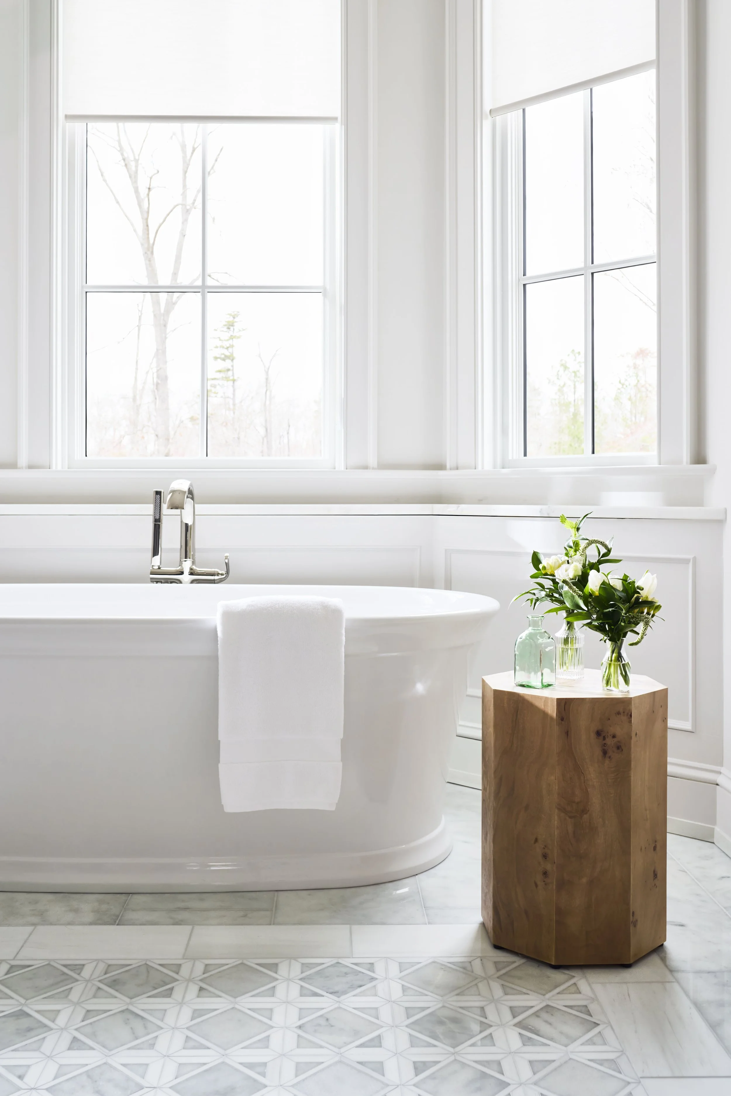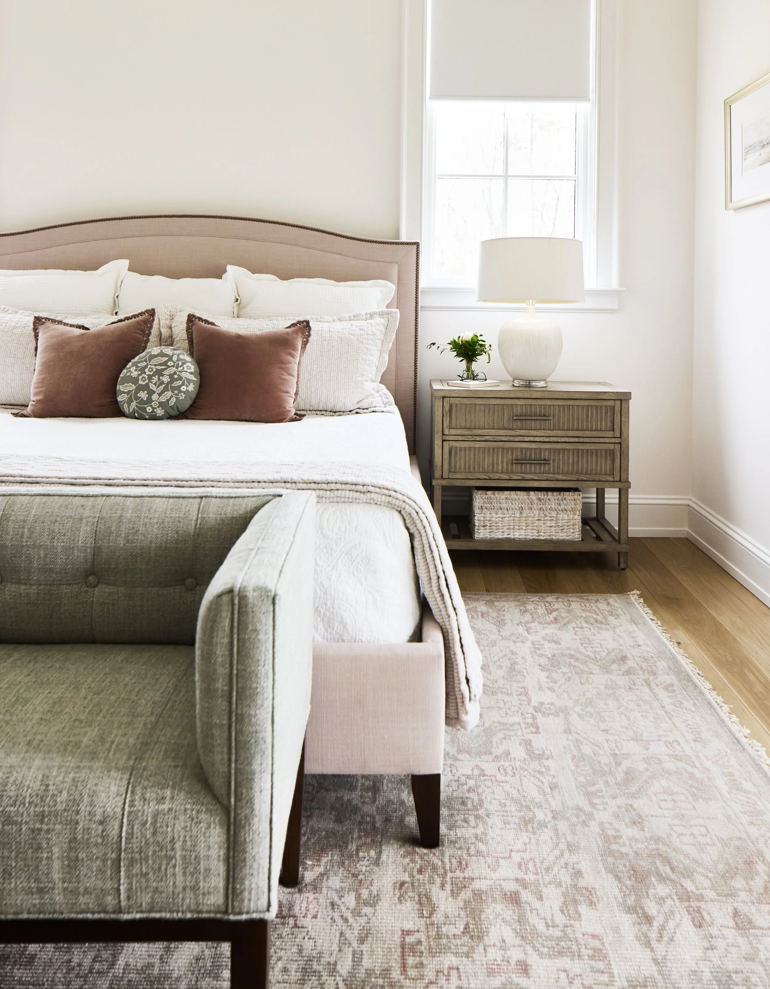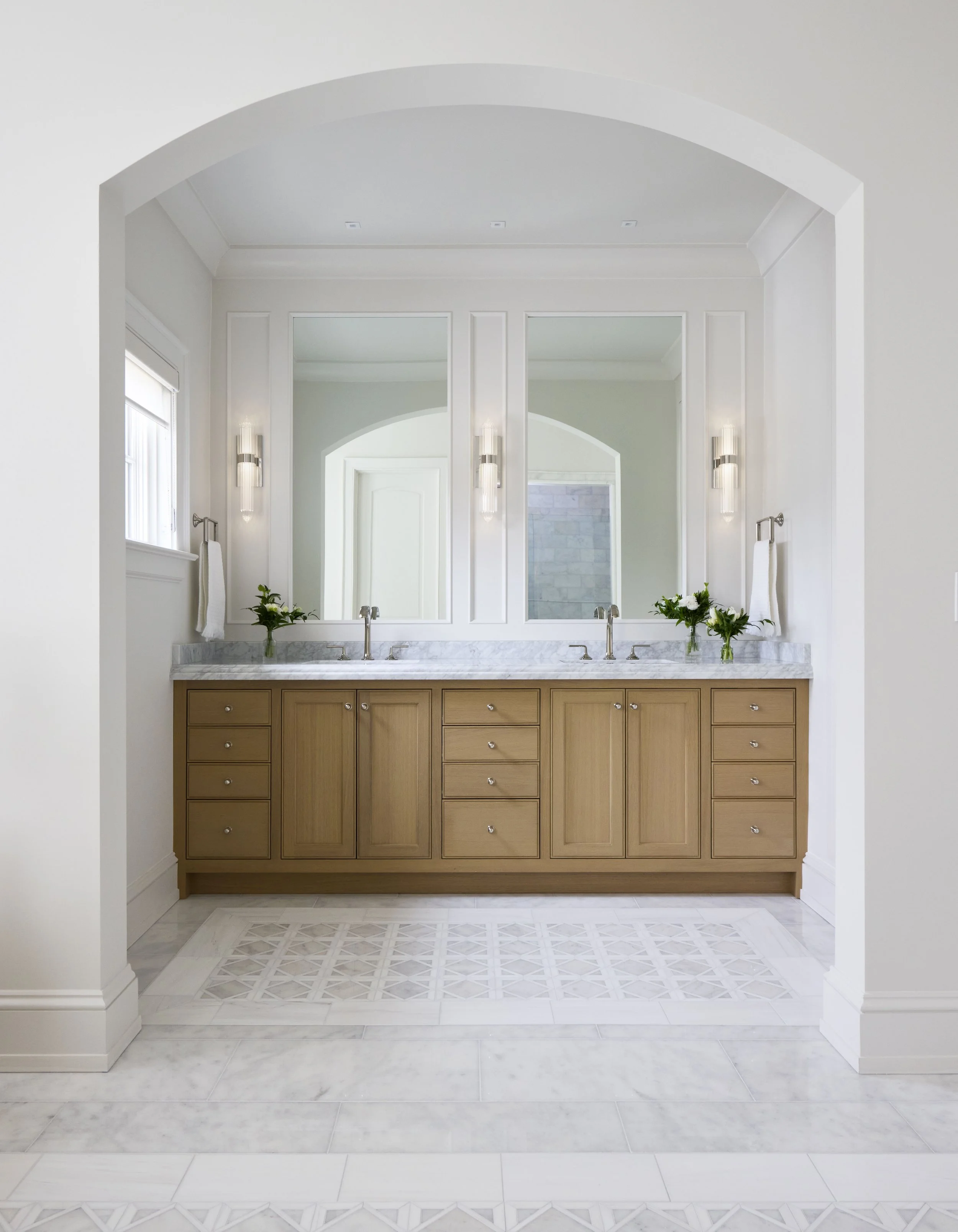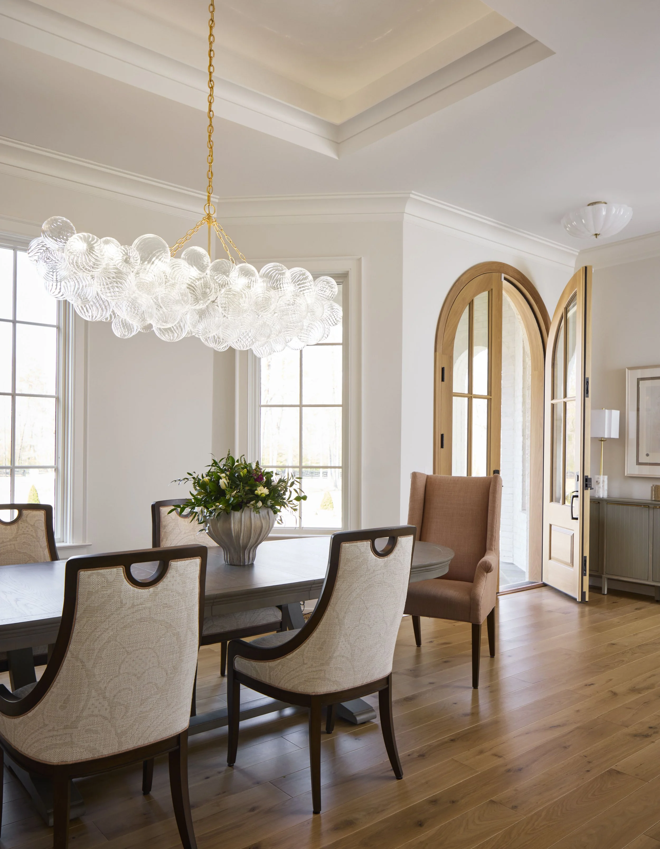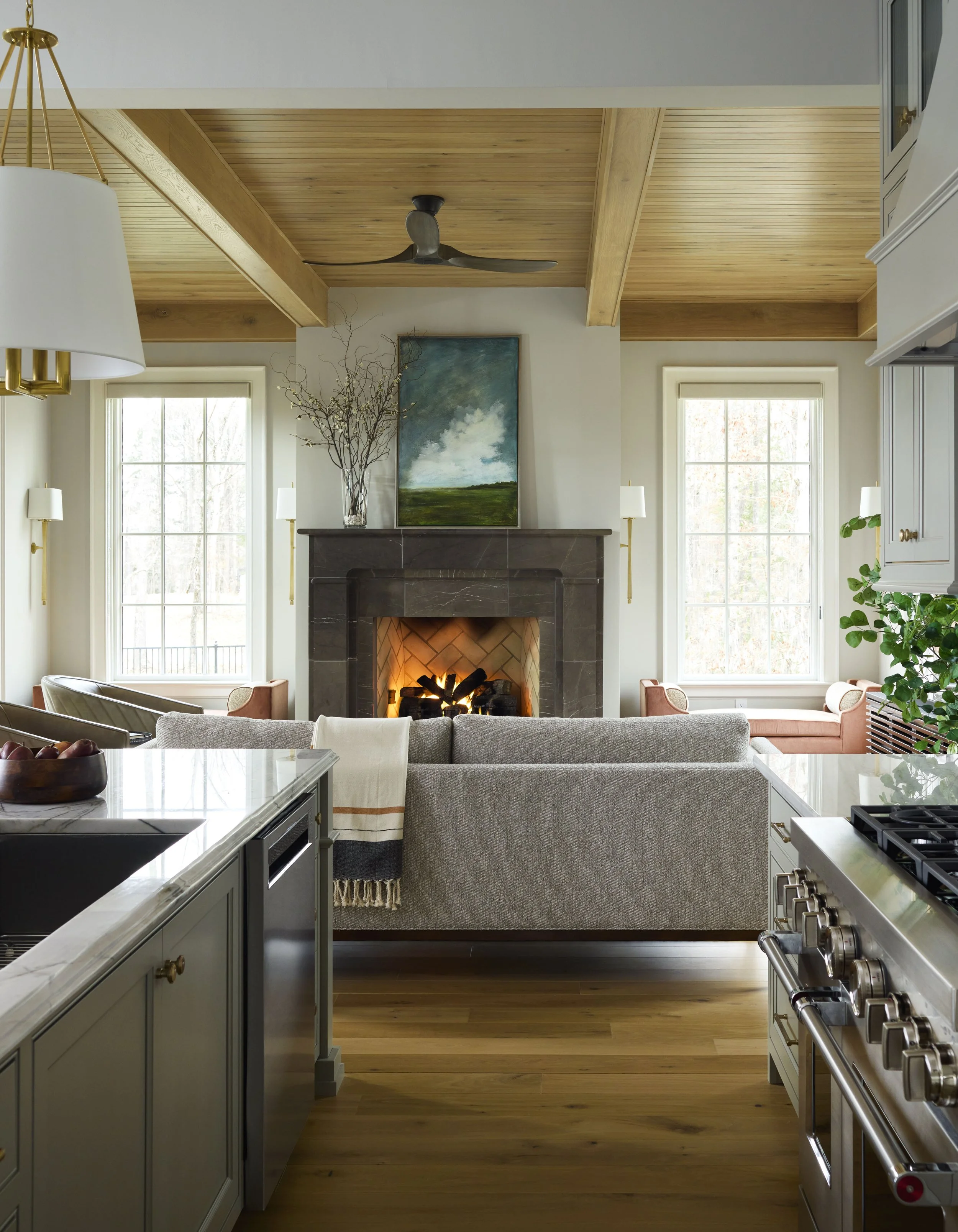 This whole-house renovation transforms a once heavy, dark, and dated home into a space that feels serene, bright, and easy to live in. While the architectural changes were relatively minimal, they made a big impact—especially with a completely reimagined front entry and all-new windows and doors. Instead of reworking the already open floor plan, the design leans on ceiling details to help define different areas and give each space its own identity. Throughout the home, rich textures and natural materials add warmth and character, creating a look that feels both relaxed and quietly refined.